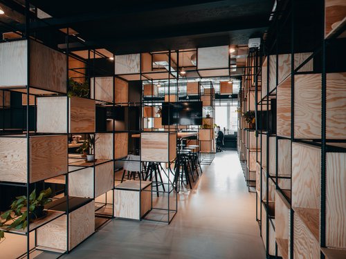 The interior design of the Black n' Arch studio is based on a scenographic approach to same. The basic element is, of course, the colour black, which evokes a sense of an effect in a theatre space. The sub-equipment’s spot lighting enhances the perception of the furniture as theatrical scenery. A no less significant detail of the studio is the Roxor jungle, in which the colours of greenery and light wood intertwine.
